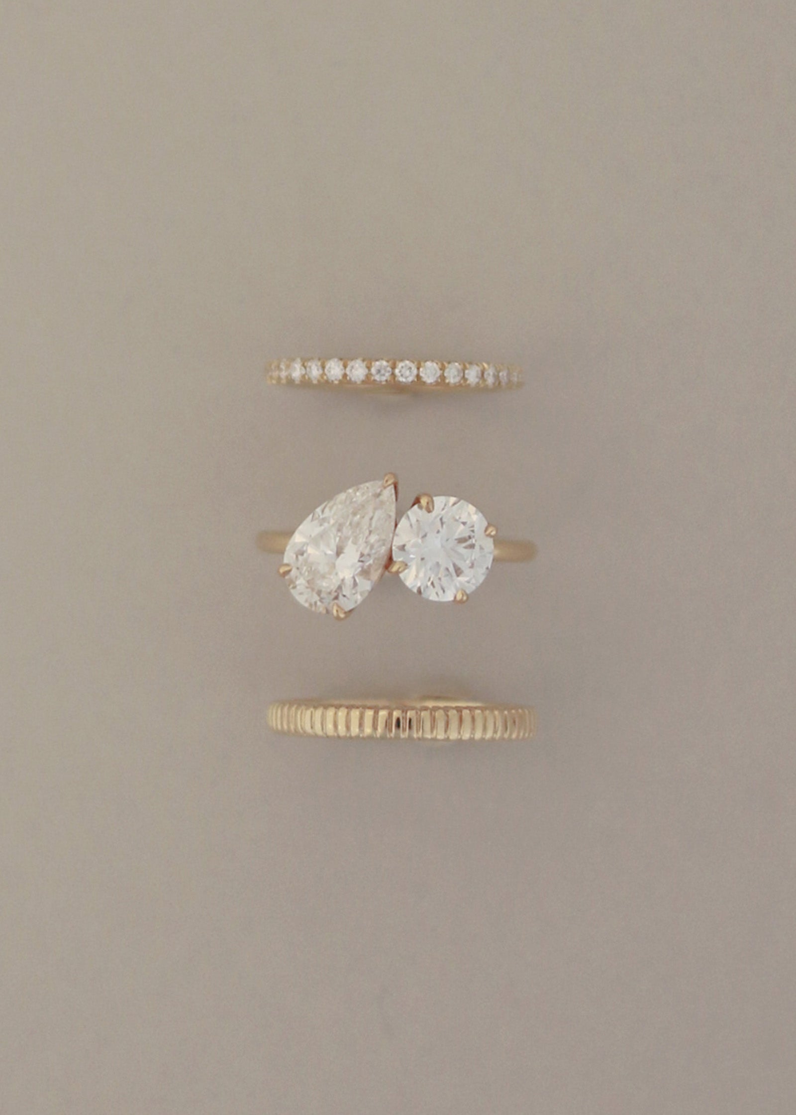 The modern Toi et Moi, meaning you and me in French. The Annette features two diamond shapes of your choice—classy, yet unique with its vintage take—just the ideal ring if you're looking to renew the ring with an additional diamond that represent the next chapter.