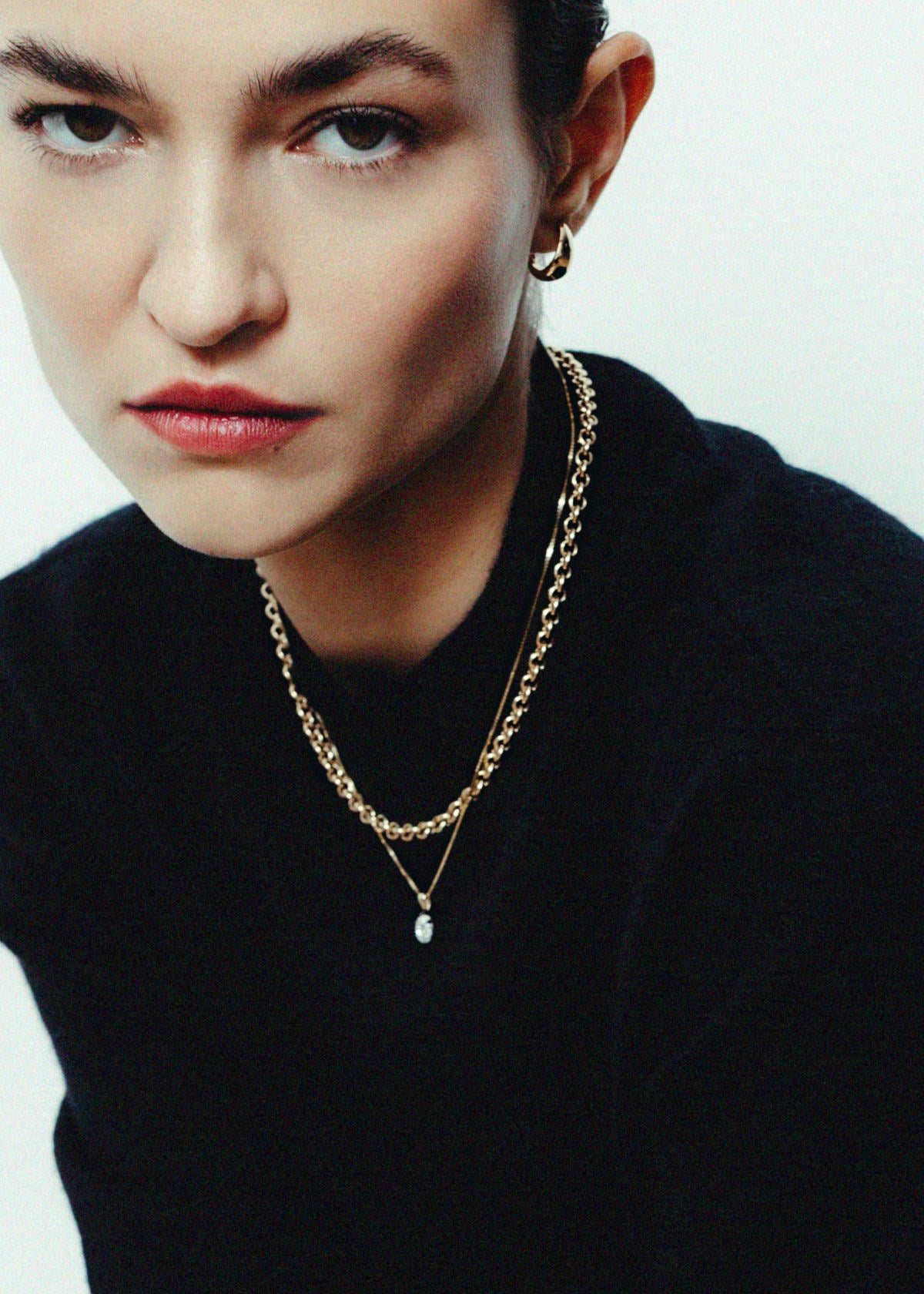 Pairs beautifully with complimentary Kinn chains like the Micro Rolo or Box Chain to create a look that’s uniquely your own.