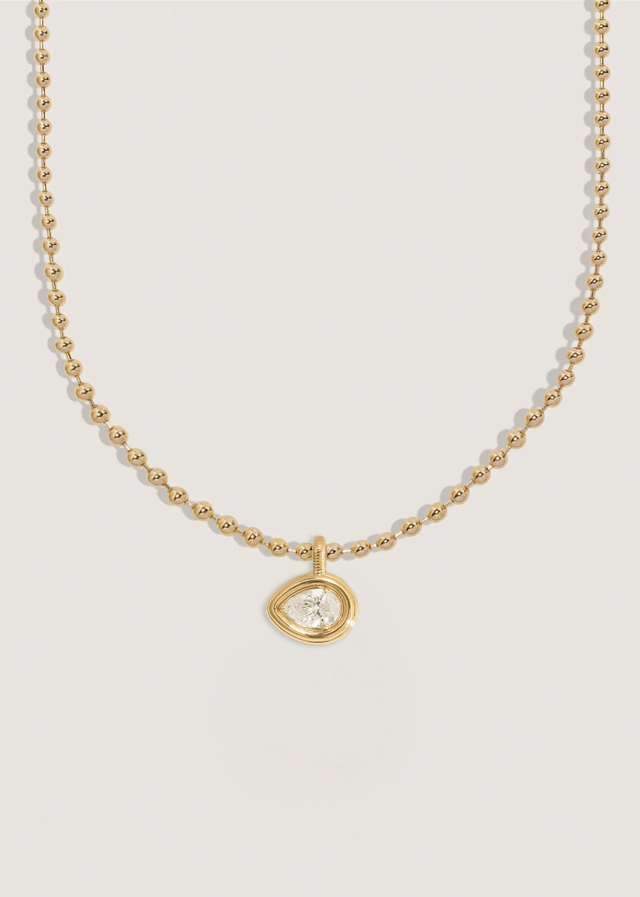 Everlasting elegance. Our Colette pear-shaped diamond pendant features a stunning 1ct lab-created diamond in a solid 14k gold bezel setting. Designed to be worn on your favorite chain today and treasured for generations to come.