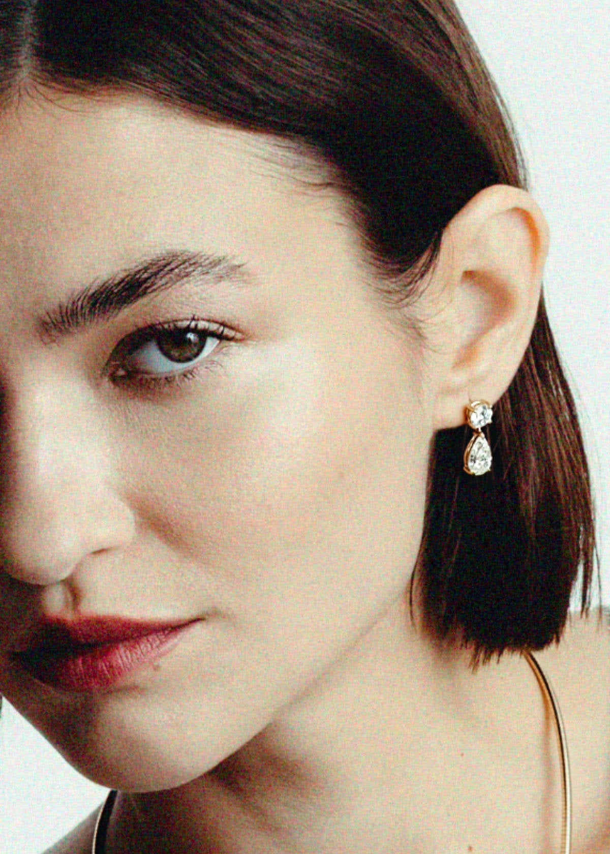 Striking from every angle. The Frankie Earrings are a sculptural interplay of pear and round diamonds—balanced geometry with undeniable presence. Designed to move with you, they reflect light and intention in equal measure. A refined expression of boldness, made to be remembered.