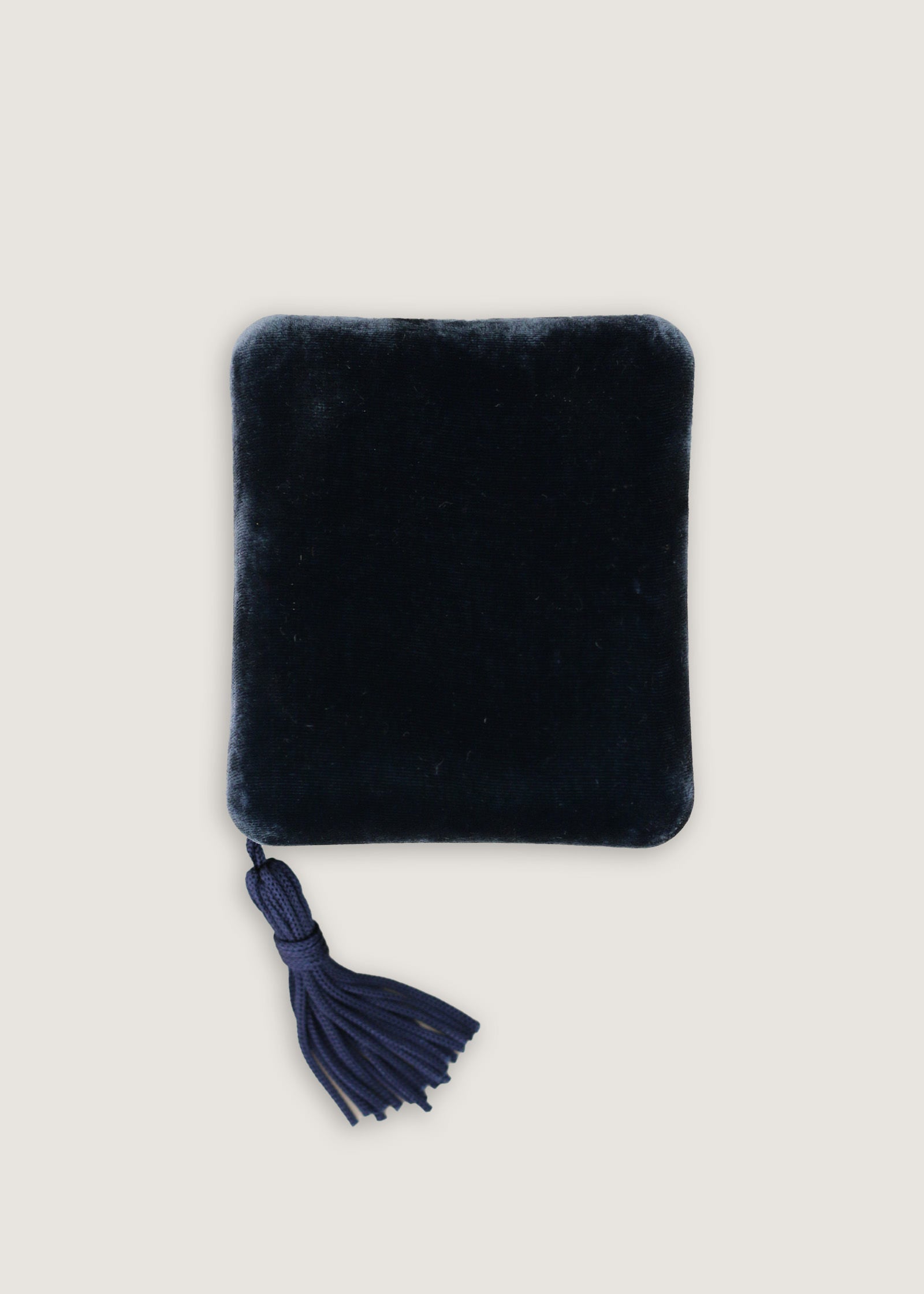 • Exterior: Signature Kinn blue velvet with a soft tassel pull