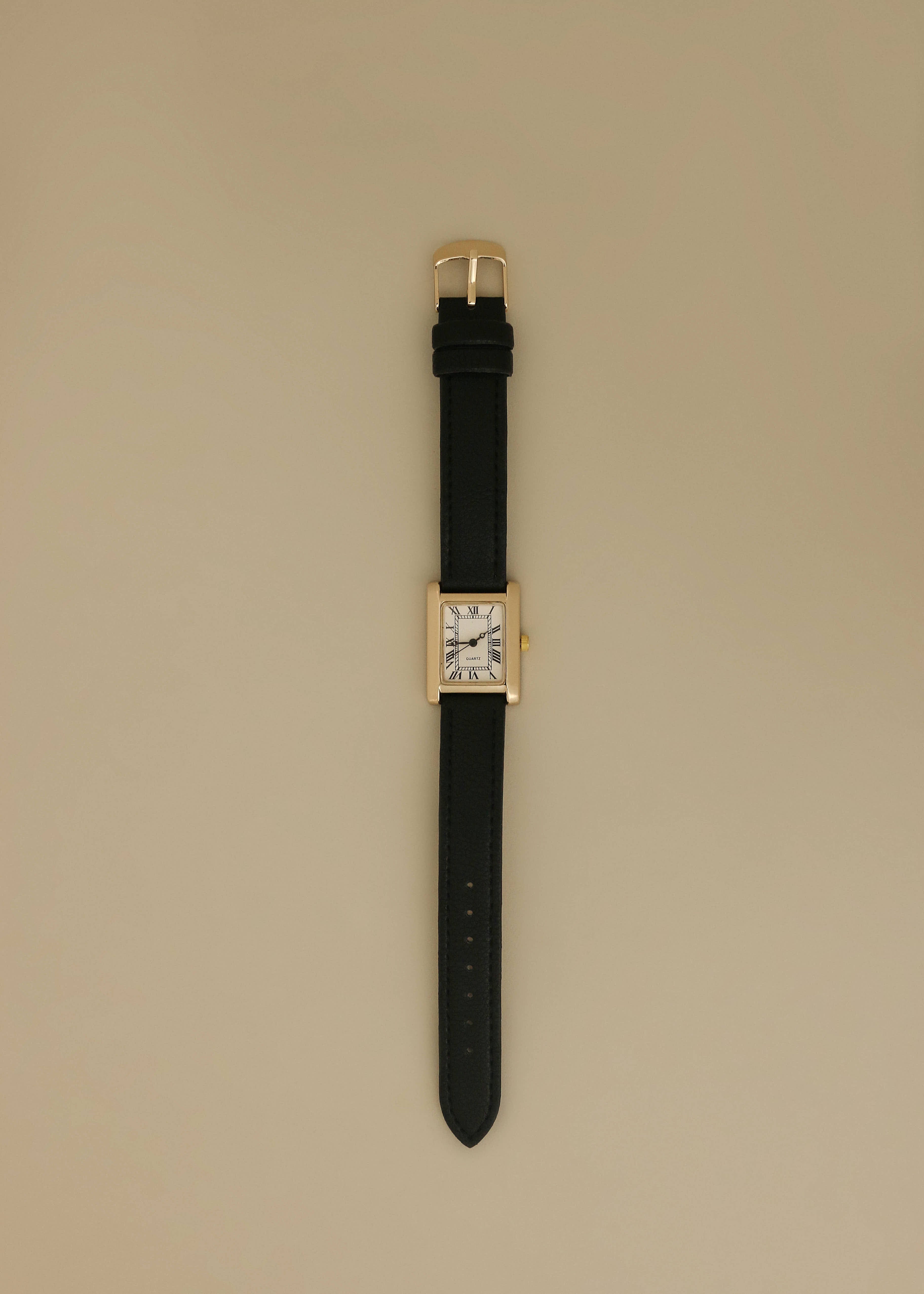 Vintage Quartz Rectangle Black Leather Strap Watch