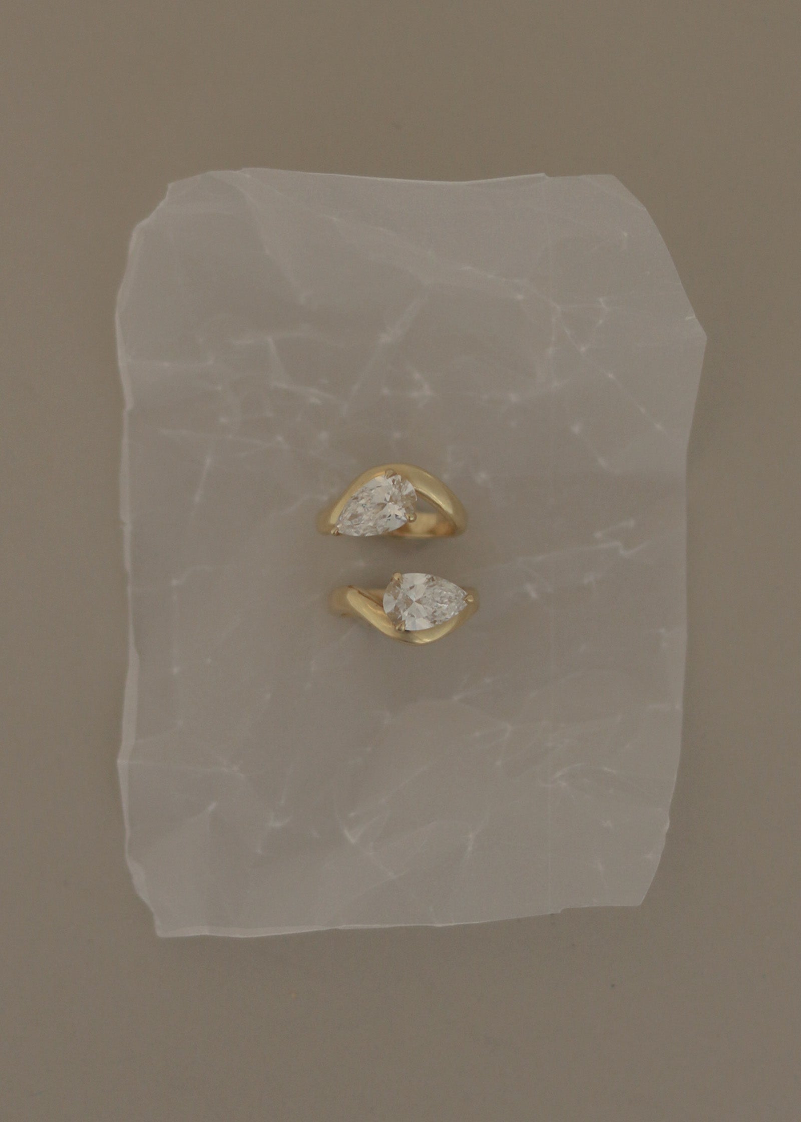An elegant tilt toward modernity. The Kira Engagement Ring features a diamond of your choice set on a gently angled arc, creating a dynamic silhouette that balances boldness with grace. Designed to stack seamlessly with the Rosewood Curved Ring, it invites effortless layering with refined intent.