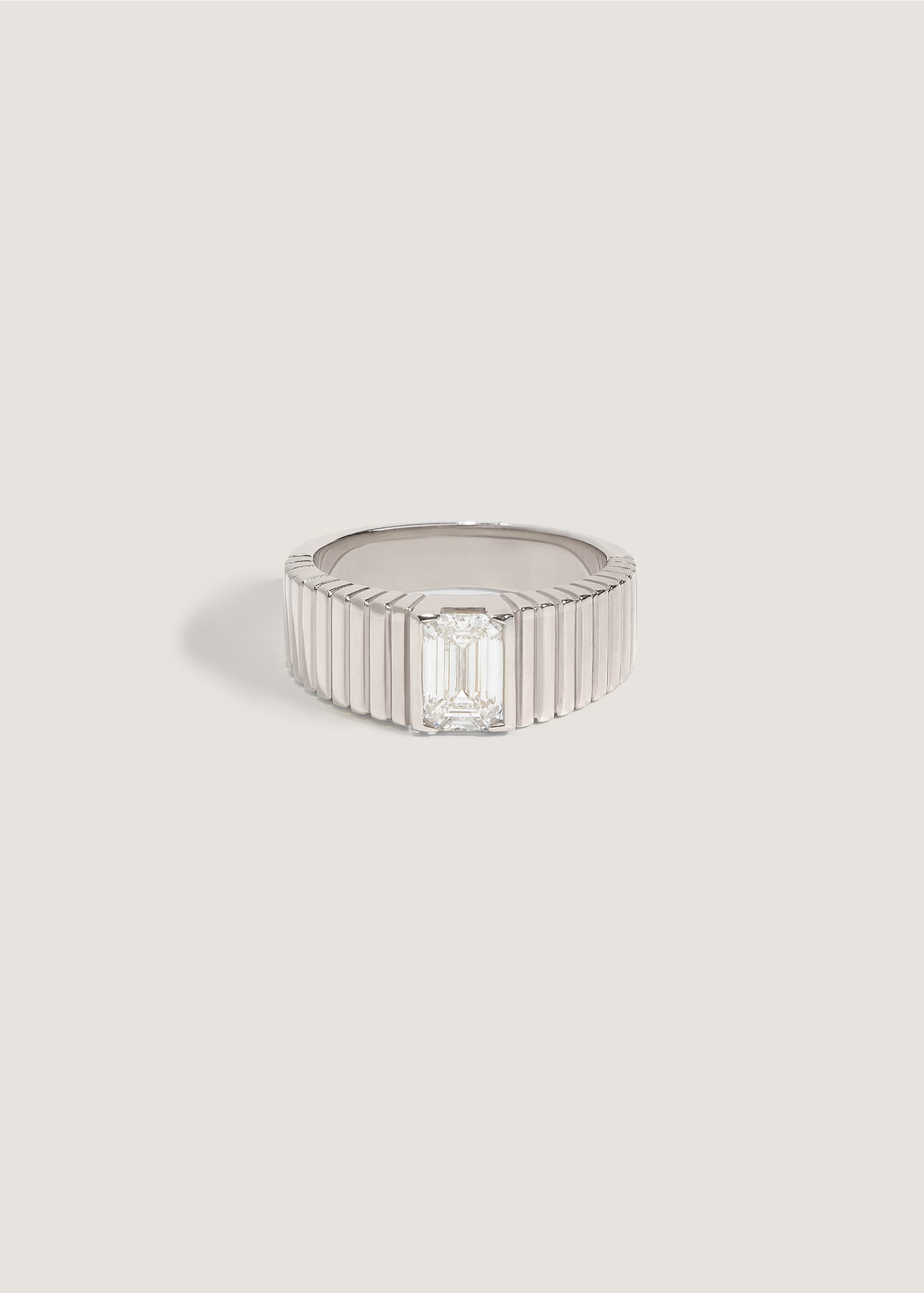 Our Solis Engagement Ring features a diamond of your choice prong set in a 14k solid yellow or white gold ribbed band.